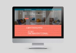 Per Controvento abbiamo curato l’intero ecosistema visivo: dal logo all’immagine coordinata. Il progetto si estende agli spazi fisici attraverso un sistema di branding ambientale che guida l’ospite con icone personalizzate.